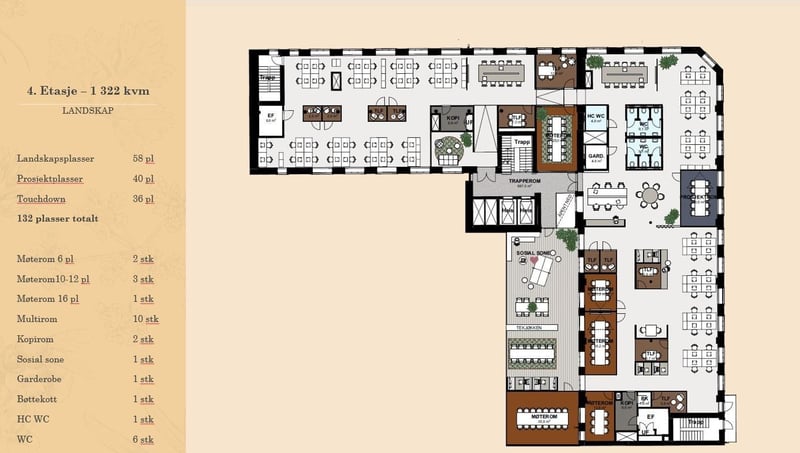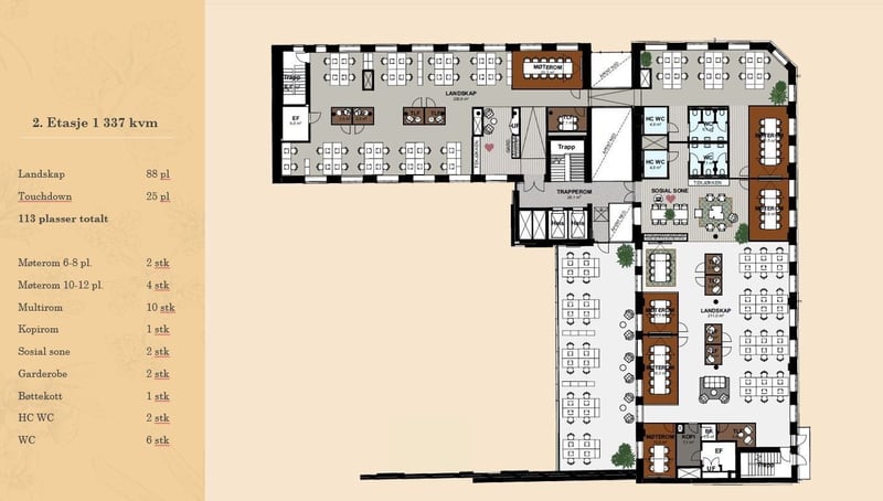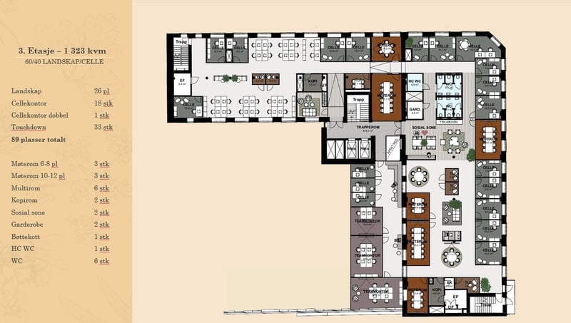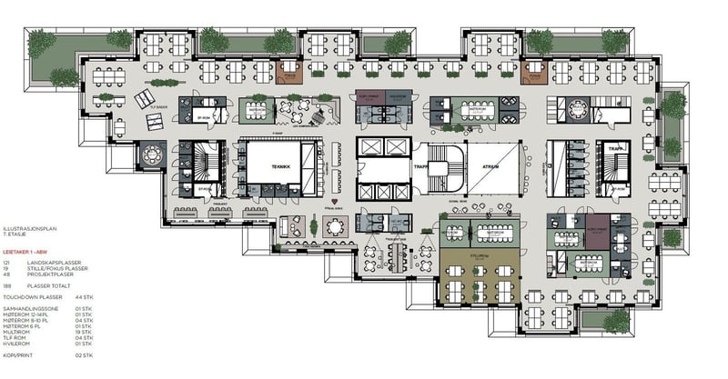 Antatt kontorleiepris 3 300 kr/m² i året