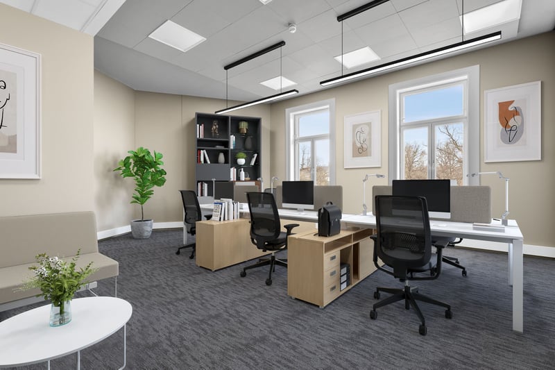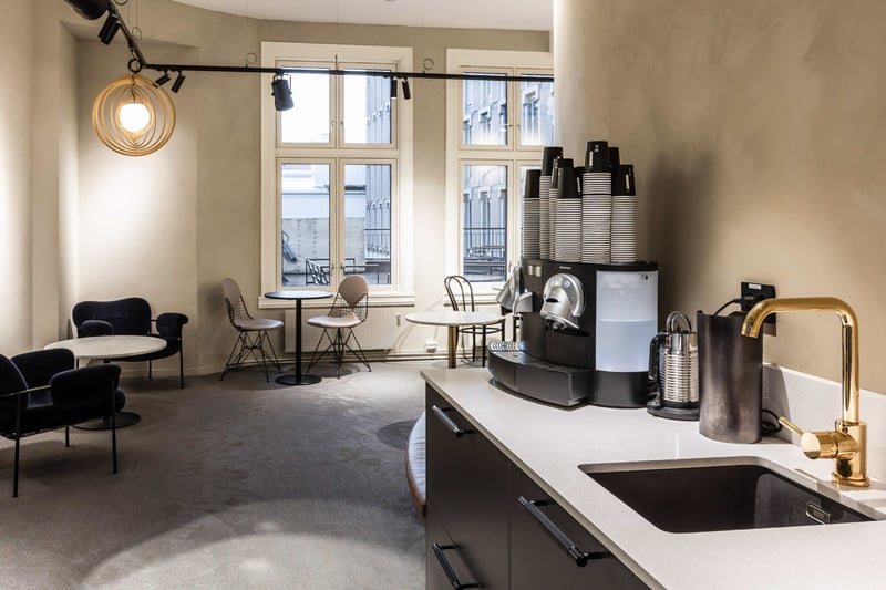 Fasiliteter i eiendommen omfatter en resepsjon, tilgang til møteromsfasiliteter, spisested, garderober med dusj, sykkelparkering og parkering i parkeringskjeller. Et sentralt atrium utgjør et fellesområde i bygget.