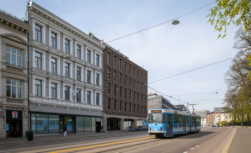 Tilgangen til kollektivtransport er omfattende. Eiendommen ligger i kort gangavstand til Nationaltheatret stasjon, med forbindelser til tog, T-bane, trikk og buss. Flere buss- og trikkeholdeplasser finnes i umiddelbar nærhet.