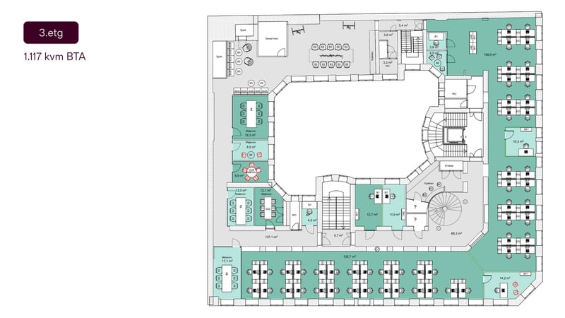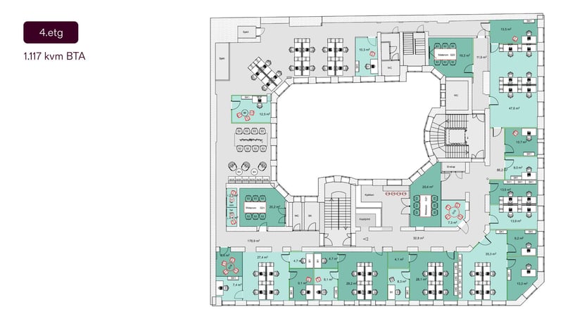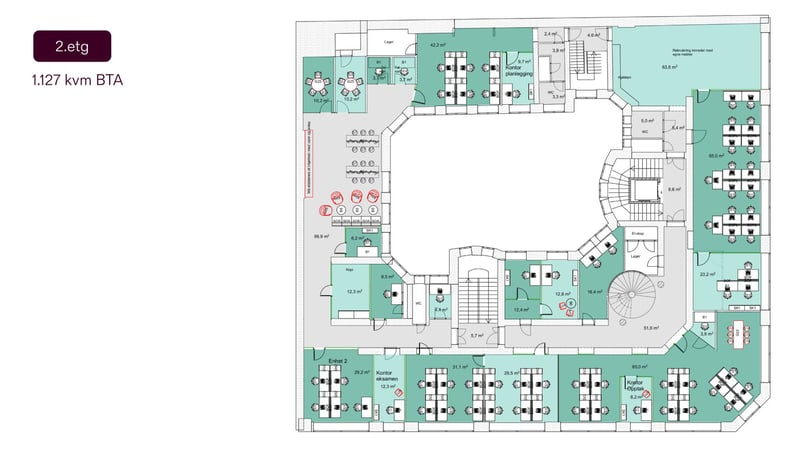 Kirkegata 17 er en klassisk og representativ forretningsgård med en svært sentral beliggenhet i Kvadraturen i Oslo. Bygget er opprinnelig fra 1898 og har et samlet areal på rundt 5300 kvadratmeter, noe som gir en solid og ærverdig ramme for enhver virksomhet. Eiendommen ligger i et veletablert og attraktivt område, kjent for sitt særpreg med historiske bygårder, et yrende gateliv og et bredt utvalg av servicetilbud som restauranter, kafeer og butikker i umiddelbar nærhet.