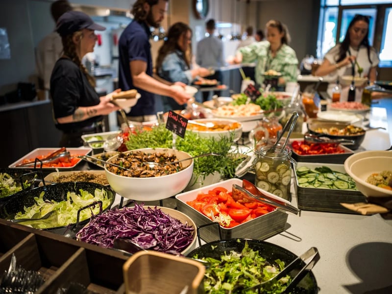 Personalrestauranten drives av Compass Group, som serverer variert utvalgt til frokost og lunsj
