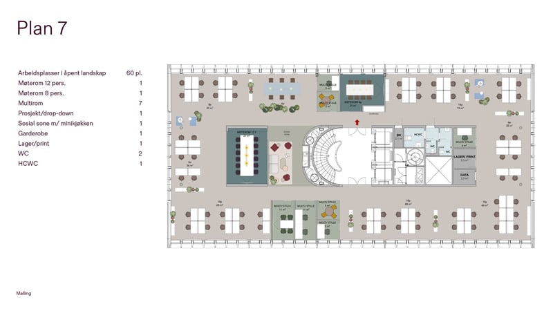 Det er 8 ulike møterom som kan benyttes av eiendommens leietakere