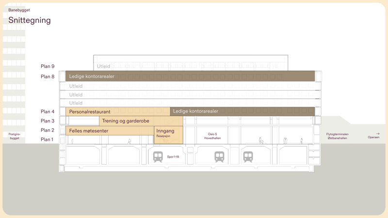 NøkkelinformasjonAdresseJernbanetorget 1, 0154 OsloEtasjer7BygningstypeJernbane- og T-banestasjonAreal981–3 019 m²Byggeår1889Sist renovert år2026EnergimerkeKilde til energimerkeEnergikarakter G og oppvarmingskarakter grønnG
