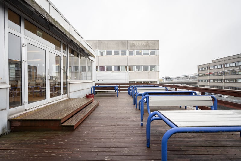 Kantinen har utgang til takterrasse