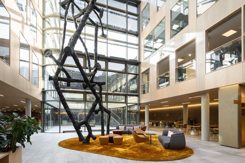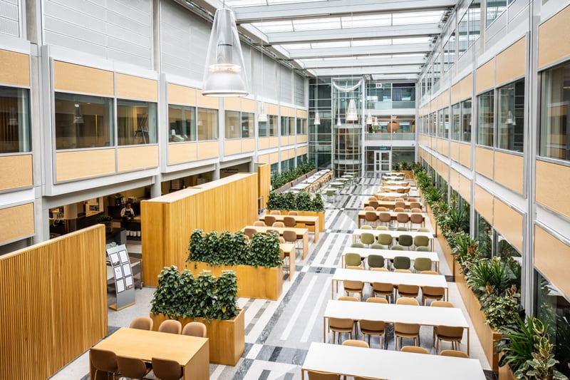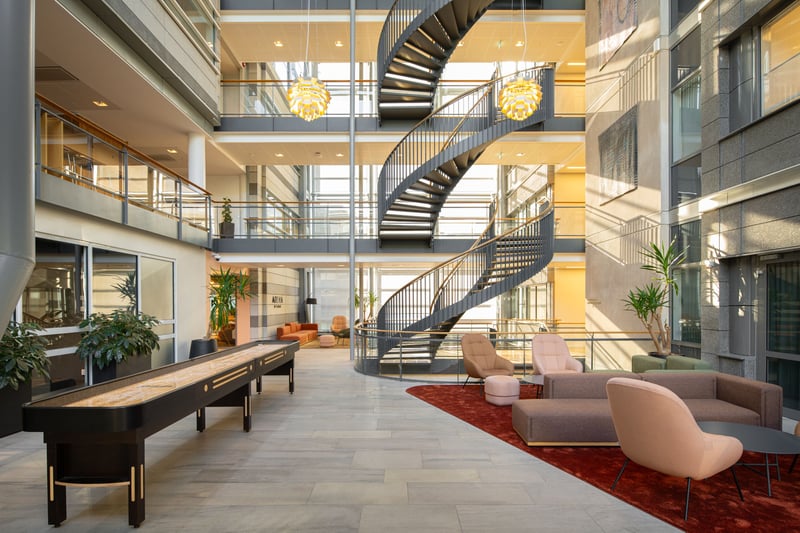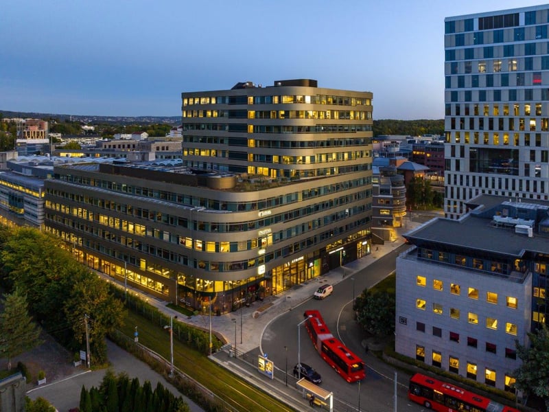 Skøyen Atrium, med adresser i Askekroken 7–21 og Drammensveien 145, tilbyr moderne kontorlokaler sentralt plassert i et av Oslos mest attraktive næringsområder. Eiendommen består av to kontorbygg med et samlet bruksareal på rundt 41 500 kvadratmeter, hvor den nyeste bygningsmassen ble ferdigstilt i 2020. Beliggenheten på Skøyen gir leietakere enkel tilgang til et bredt spekter av servicetilbud og fasiliteter, inkludert en egen kantine på eiendommen. Kommunikasjonsmulighetene er utmerkede, med Skøyen stasjon som et knutepunkt for tog, buss og trikk kun en kort spasertur unna – nærmeste trikk- og bussholdeplass ligger omtrent 250 meter fra eiendommen, og togstasjonen er innenfor 400 meter. Nærmeste T-banestasjon ligger omtrent 1800 meter unna. Dette er en ideell lokasjon for bedrifter som verdsetter høy standard, god tilgjengelighet og et dynamisk nærmiljø.
