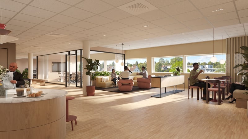 Eiendommen Hagaløkkveien 28, 1383 Asker ligger i et etablert næringsområde. Kontorlokalene har tilgang på dagslys fra vindusflater og utsyn over omgivelsene.