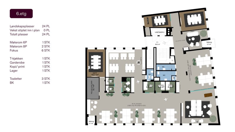 Toppleie: 6 500 kr/m² per år