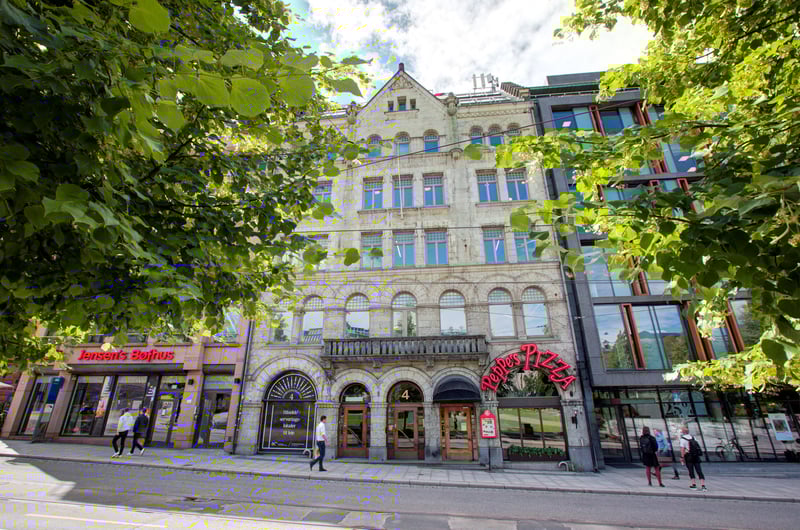 Stortingsgata 4 har en av Oslos mest sentrale og prestisjefylte adresser, plassert midt i sentrum med umiddelbar nærhet til alt byen har å tilby. Eiendommen består av et karakteristisk forretningsbygg, opprinnelig oppført i 1898, med et samlet bruksareal på rundt 2000 kvadratmeter. Plasseringen gir enkel tilgang til et bredt utvalg av butikker, spisesteder og kulturtilbud rett utenfor døren. Kommunikasjonsmulighetene er utmerkede, med T-banestasjonen Stortinget kun ca. 400 meter unna, og Nationaltheatret stasjon med togforbindelser innenfor ca. 700 meters gange. I tillegg er det svært kort vei til både buss og trikk, med nærmeste stopp henholdsvis ca. 100 og 250 meter fra eiendommen. Bygget har også egen kantine tilgjengelig for leietakerne.